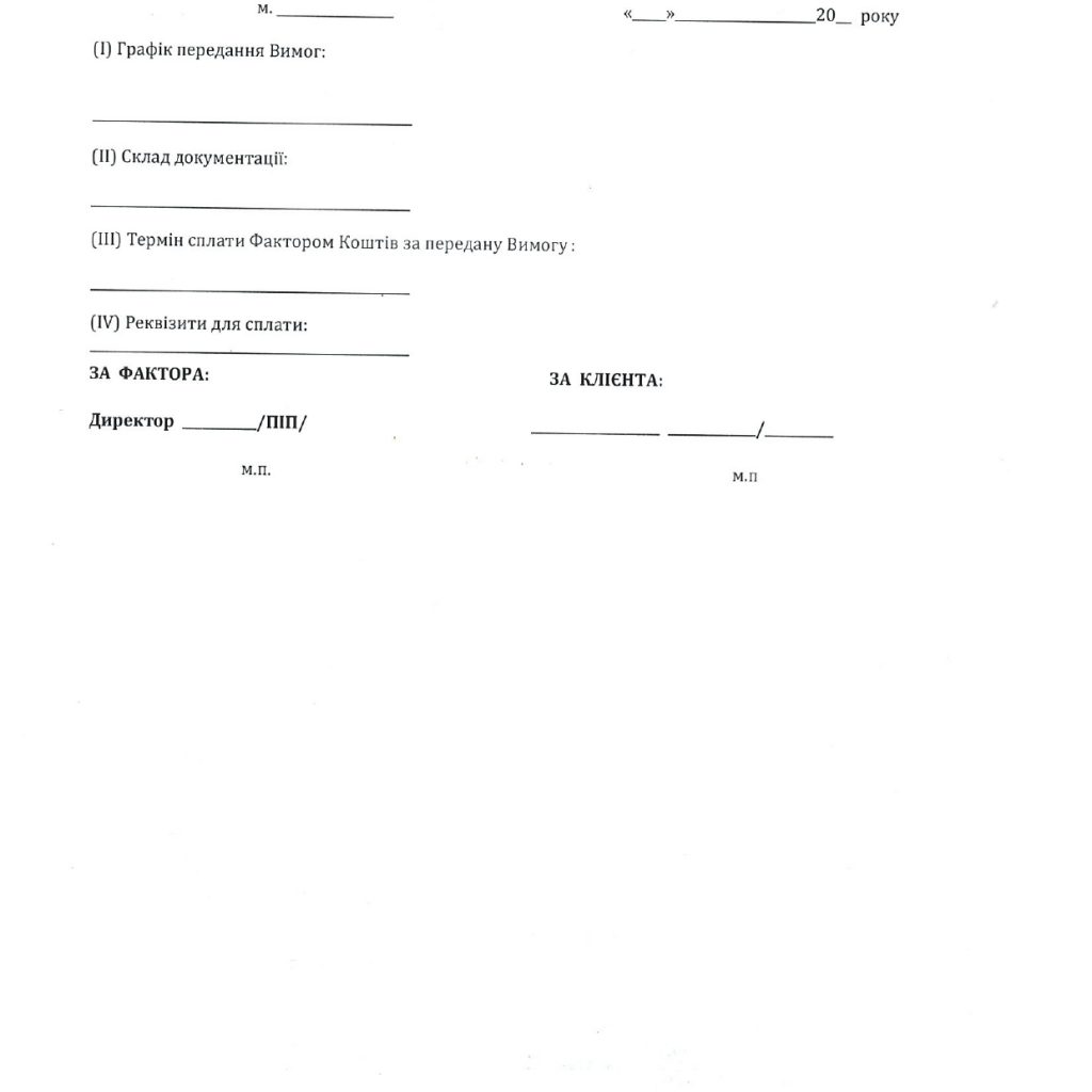 Інформація про фінансову послугу викладена у Договорі про надання факторингу (далі за текстом – “Договір”).